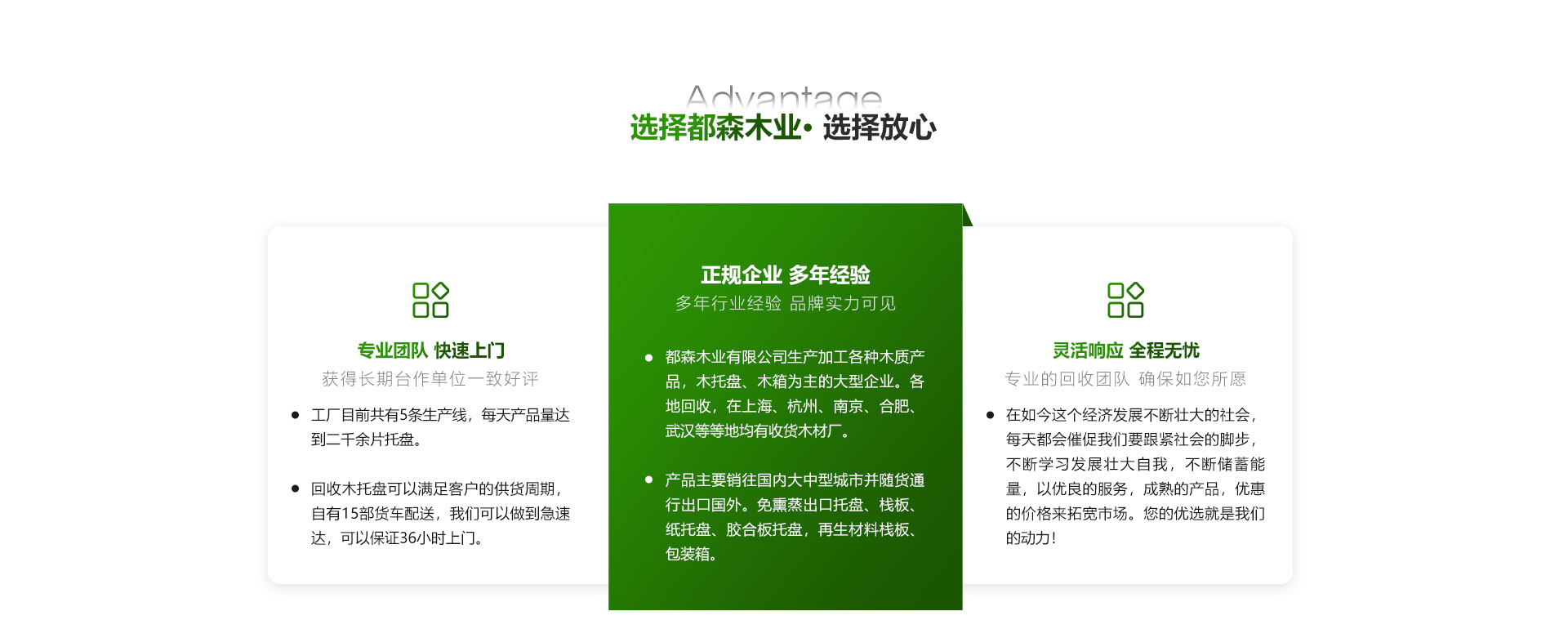 都森木業有限公司是一家以回收木托盤、木材,生產加工各種木質產品,木托盤、木箱為主的大型企業。自建公司以來,我公司根據市場經濟的發展趨勢,在經濟逐步前進的前提下發展壯大自己,不斷引入先進的生產設備,科學的管理理念,過硬的生產技術和嚴密的質量管理體系。加工:公司下轄木材加工廠,組裝廠,并備有大型標準烘房,多功能平板刨,壓刨,挖槽,機械設備等。產品主要銷往國內大中型城市并隨貨通行出口國外。免熏蒸出口托盤、棧板、紙托盤、膠合板托盤,再生材料棧板、包裝箱。工廠目前共有5條生產線,每天產品量達到二千余片托盤??梢詽M足客戶的供貨周期,自有10部貨車配送,我們可以做到急速達?;厥眨汗窘⒁詠黹L期以現金收購各種規格木托盤,塑料托盤,棧板,復合托盤,木箱,收購價格以托盤木箱的規格、使用情形、新舊程度、材質為估價標準。可上面看貨。我們將以豐富的知識,提供“量身定做”的方案來服務和滿足每一用戶不同的需求,現金...